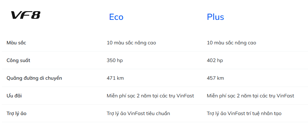 VF 8 Eco và VF 8 Plus dành cho những người hiểu rõ giá trị sang trọng và đẳng cấp, mong muốn tận hưởng trọn vẹn những trải nghiệm cho bản thân và gia đình.